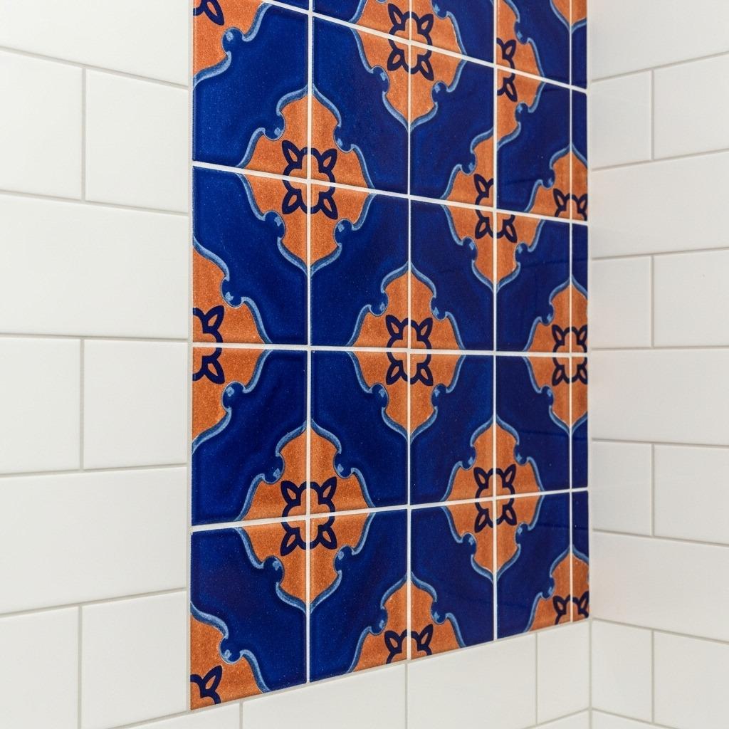 You might use your statement tile as a single row of accents within an otherwise simple field of tiles. Or create a small focal area, like behind your sink or in a shower niche, where that special tile really shines. Surrounding it with simpler tiles lets people actually appreciate its beauty instead of getting overwhelmed.