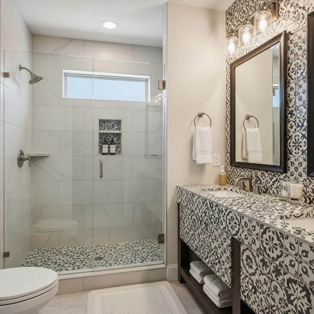 This isn’t about following strict design rules. It’s about finding patterns, colors, and layouts that speak to you and figuring out how to make them work in your specific space. Whether you’re working with a small bathroom renovation or planning something more ambitious, these tips will help you nail that creative tile look you’ve been pinning.