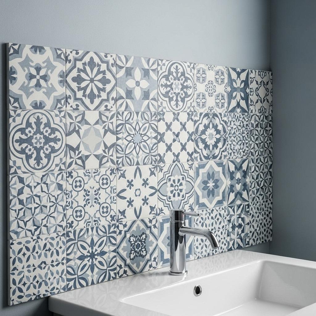 This works best when you keep some element consistent, like color palette or tile size. You might use all 6×6 tiles but in different patterns and colors. Or stick to blues and whites but vary the designs wildly. That common thread keeps it from looking chaotic.
