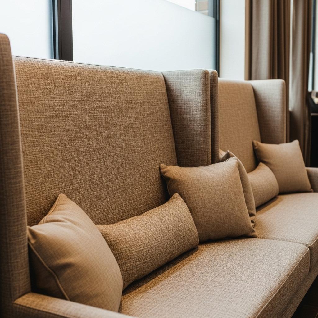 Upholstery choices matter even more with high backs. You’re covering significantly more surface area, so fabric durability and cleanability become critical. Consider also how the back height interacts with windows, light switches, or artwork on adjacent walls.