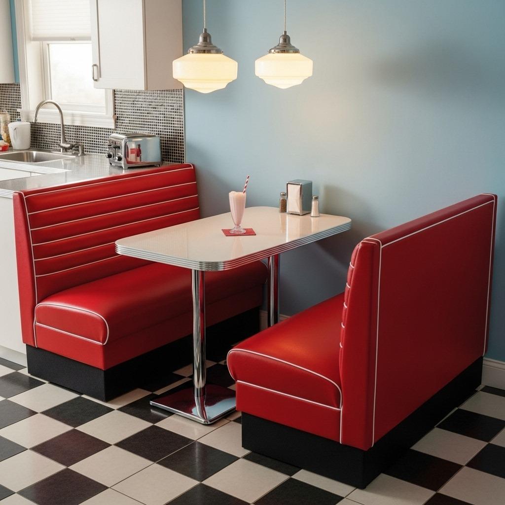 For those who love the restaurant aesthetic, a genuine booth-style banquette brings that energy home. Think vinyl upholstery, defined edges, and that satisfying slide-in feeling you get at your favorite diner. This works particularly well in vintage kitchen decor schemes where embracing nostalgia is part of the point.