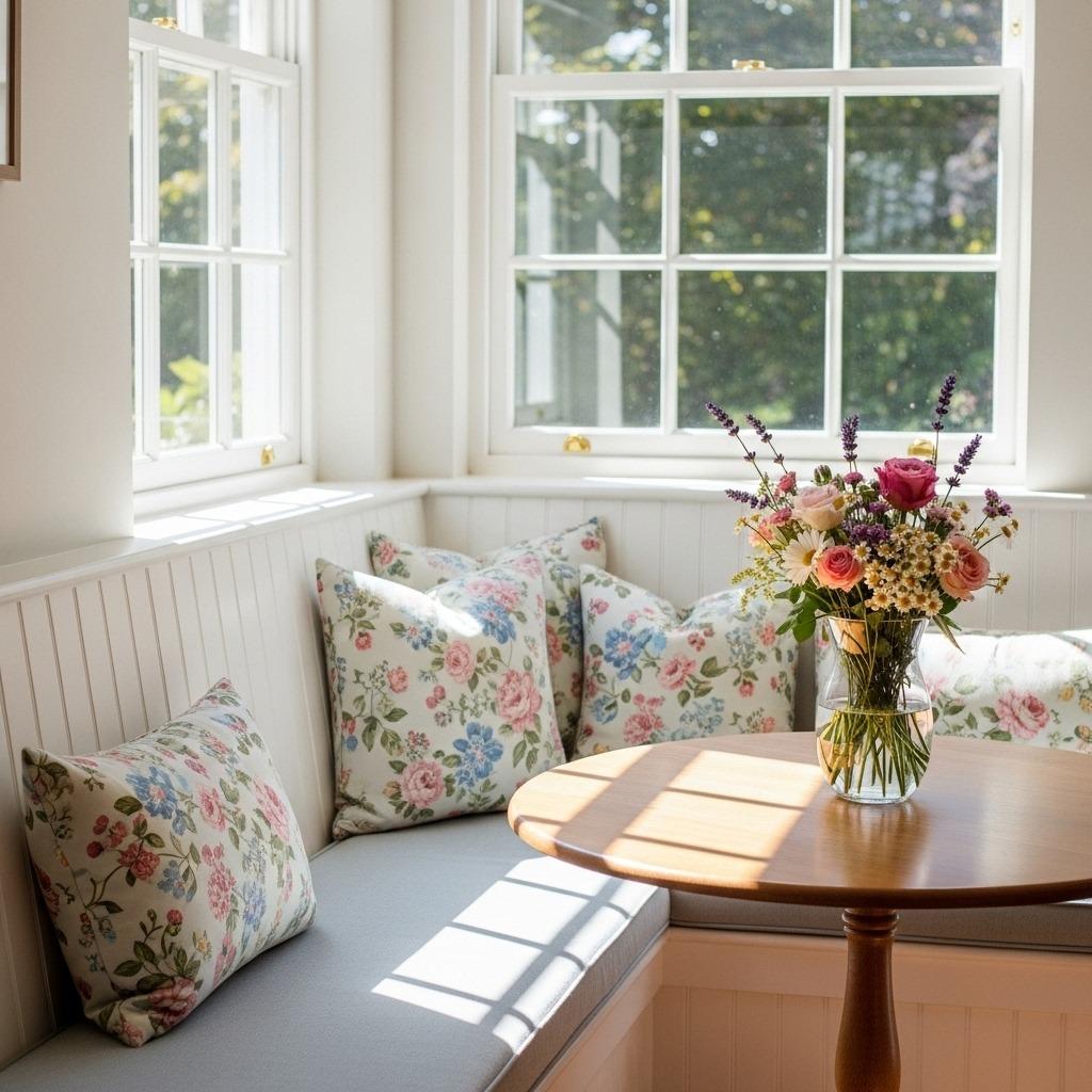 Sometimes your banquette becomes the pattern punch your kitchen needs. A bold fabric choice transforms simple built-in seating into an art piece. This approach works beautifully in neutral kitchens where you want personality without permanent commitment – you can always reupholster if your tastes shift.