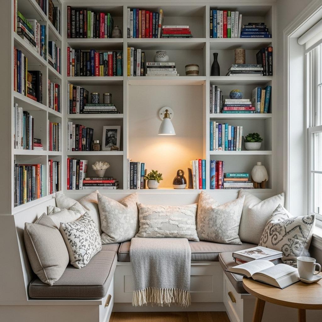 Consider weight distribution if you’re planning extensive shelving above the seating. Proper structural support matters, especially if you’re stacking heavy hardcover books. This isn’t a DIY project to skimp on – get the framing right from the start.
