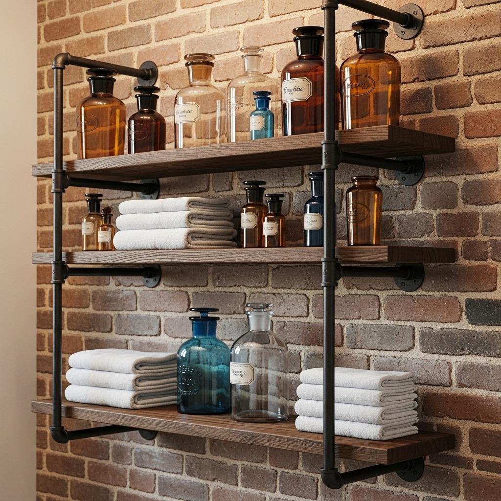 The adjustable nature of pipe shelving means you can customize shelf spacing based on what you’re storing. Leave more room on the bottom for tall bottles, keep the top shelves closer together for smaller items. The open design doesn’t crowd small bathrooms visually, which is why this style appears in so many small bathroom renovation projects.