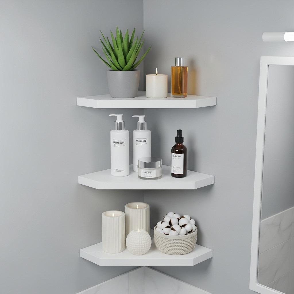 Corner space is bathroom real estate that often goes completely unused. Floating corner shelves change that instantly. They’re perfect for awkward angles where regular shelves won’t fit, and the floating design keeps everything feeling light and modern.