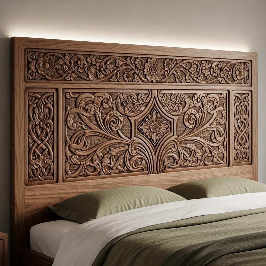Carved wooden headboards function as three-dimensional art. The craftsmanship involved in creating detailed patterns or relief carvings transforms a functional piece into something that deserves appreciation as sculptural work.