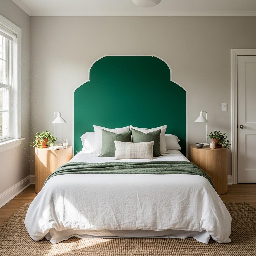Not every headboard needs to be an actual object. Painted “headboards” use color and shape to define the sleeping zone while maintaining maximum flexibility. This works particularly well in rental situations or for commitment-phobes who like changing things up.