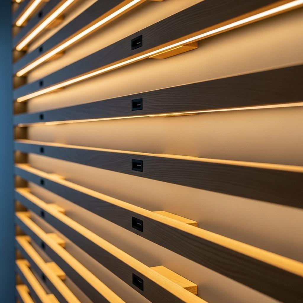 Integrated lighting takes this concept further. LED strips tucked behind slats create ambient backlighting that transforms bedrooms into relaxing sanctuaries. Some designs even incorporate USB charging ports or shallow shelving between slats for ultimate functionality.