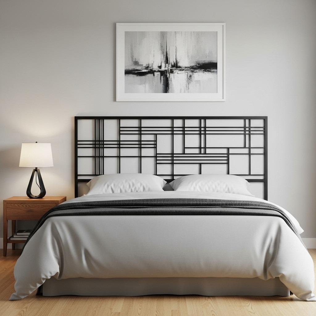 Geometric designs add visual interest without overwhelming the space. Look for headboards with negative space or open frameworks that keep the room feeling airy rather than closed in.