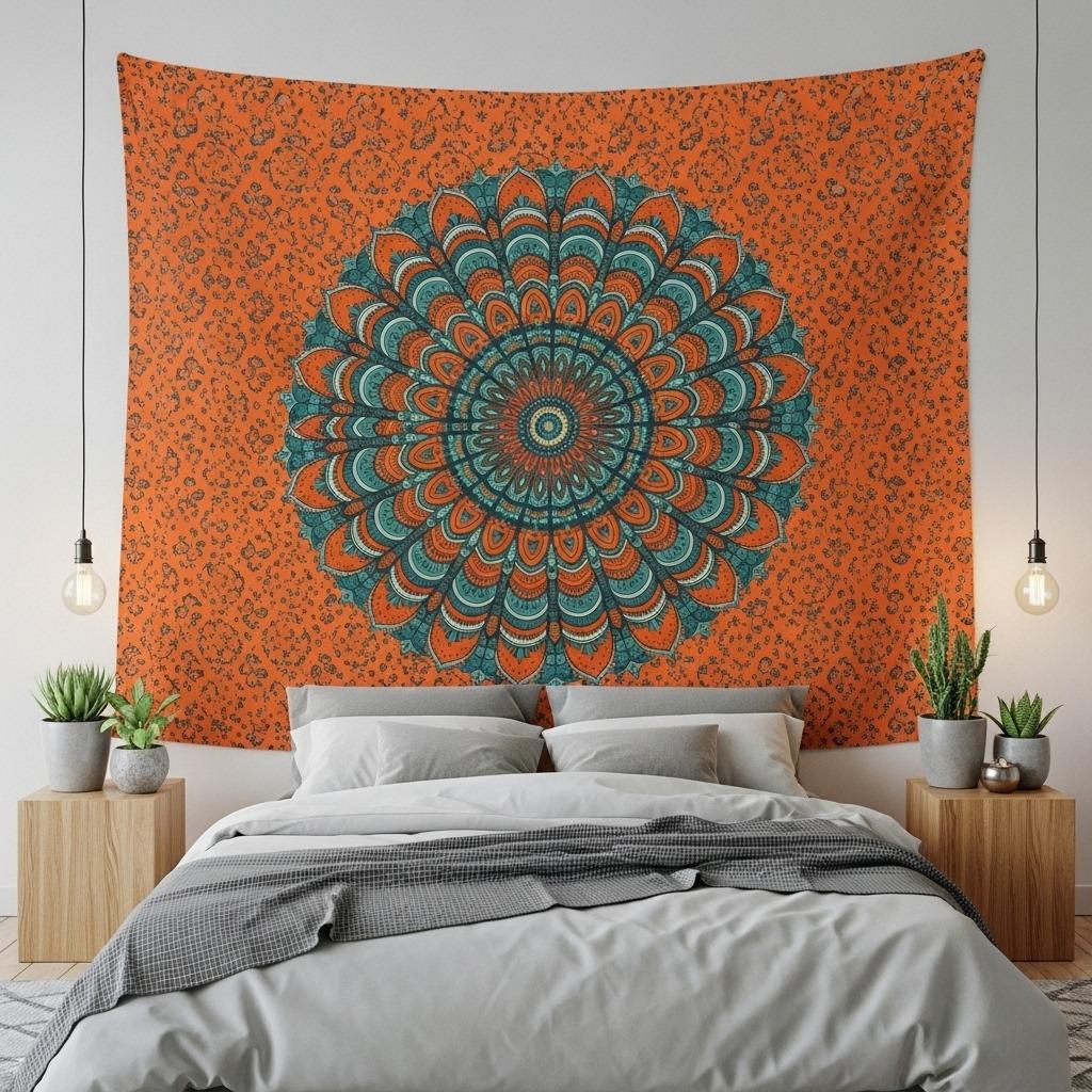 Look for tapestries that extend at least 6-8 feet wide to achieve proper visual weight behind a queen or king bed. The symmetrical design of mandalas works especially well in this application because it frames the bed beautifully without requiring precise centering.
