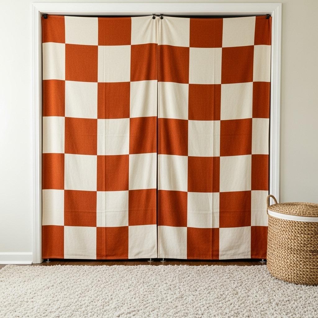 Give boring closet doors instant personality by hanging tapestries from tension rods mounted inside the door frame. This hides generic doors while adding texture and color that integrates with your overall bedroom design.