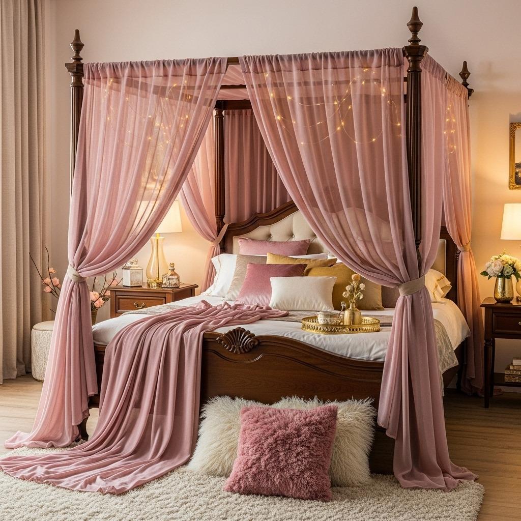 Your canopy should also align with how you actually use your bedroom. If you read in bed with lights on late while a partner sleeps, curtains that close completely offer practical privacy. If you’re mostly interested in aesthetics and rarely close your curtains, a decorative frame might be plenty.