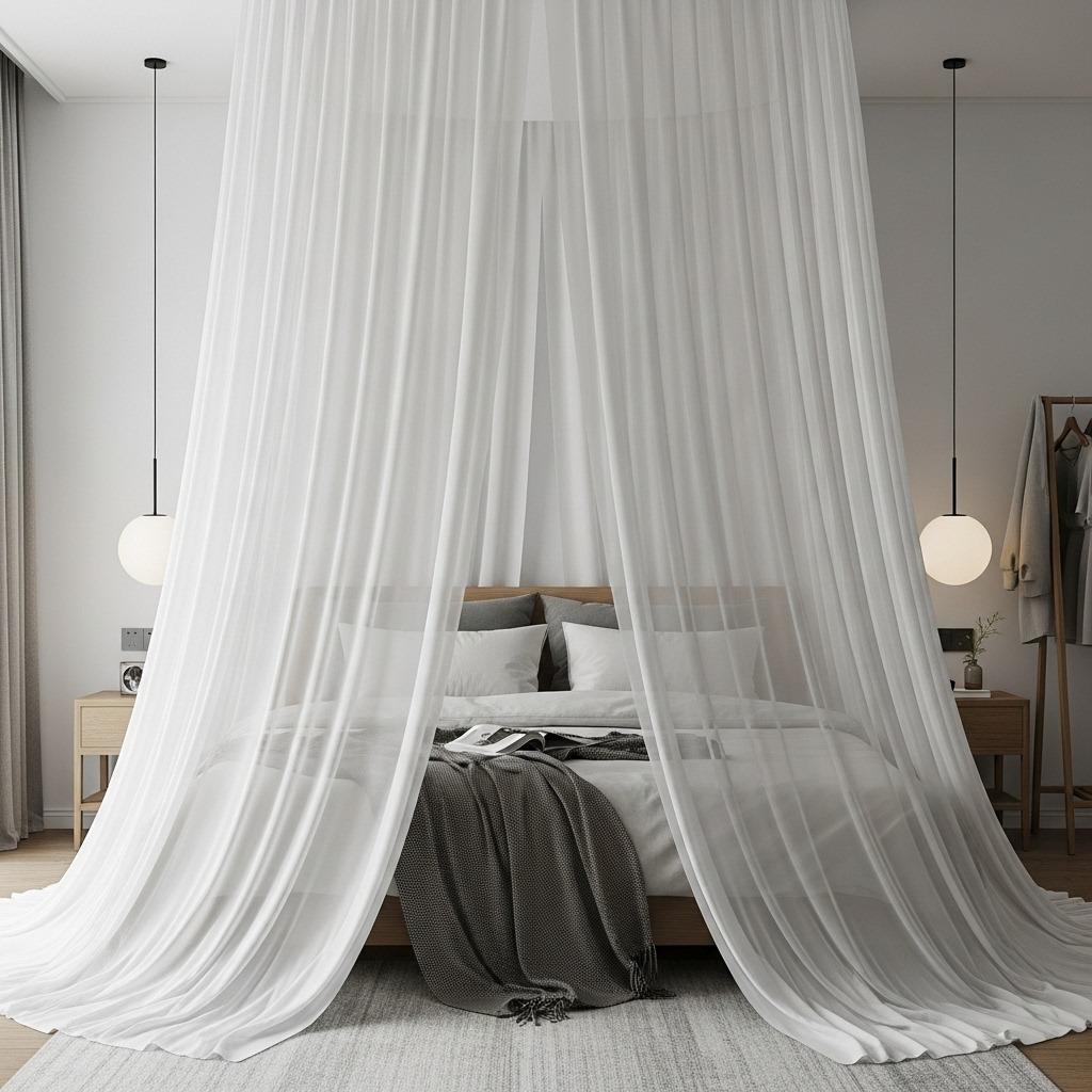 Pair your understated canopy with light wood furniture, plenty of white space, and touches of black for contrast. Add warmth through textured throws, wool rugs, and maybe some greenery. The result feels calm, breathable, and timeless rather than trendy.