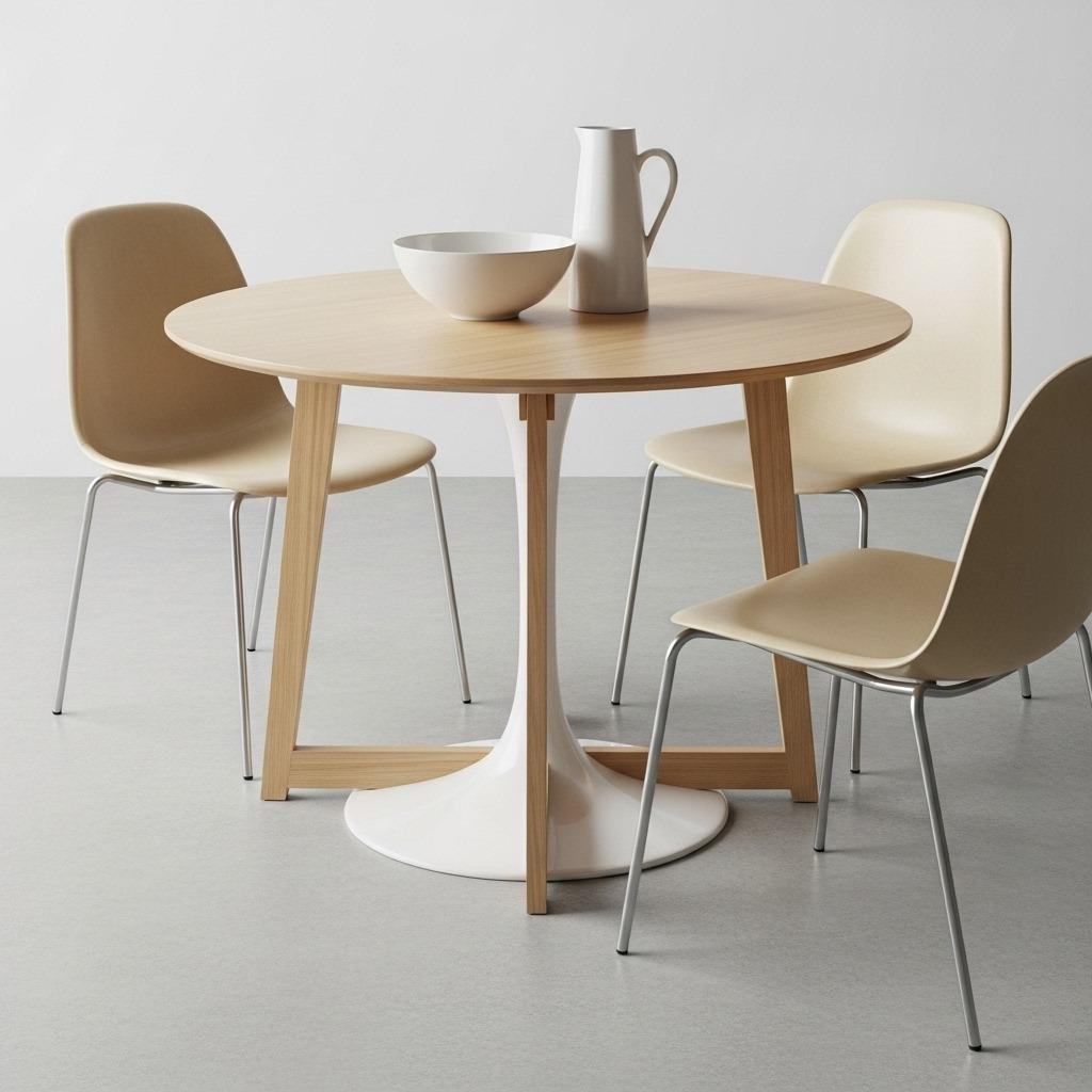 Round tables naturally feel more spacious in small rooms because there are no corners jutting out into walkways. Add an extension mechanism, and you’ve got a compact dining table that grows when you need it. These work particularly well in square rooms where a rectangular table would feel awkward.