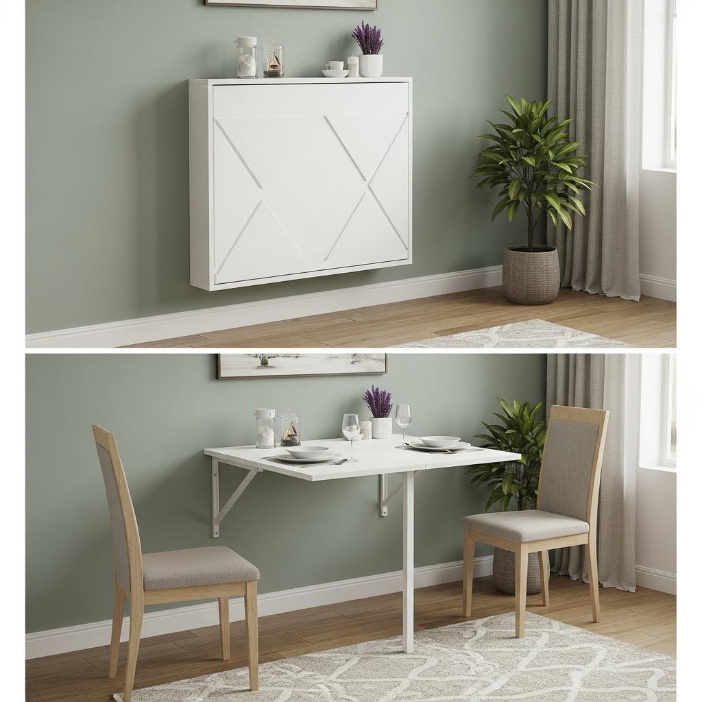 The transformation is dramatic. One moment you have a blank wall or decorative panel, the next you have a full dining table. For ultra-small studios or efficiency apartments, this disappearing act is often the only way to fit proper dining space. The table literally vanishes when you’re done eating, making your apartment feel larger most of the time.