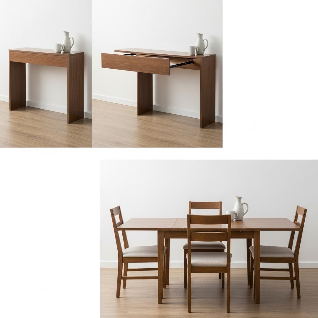 The transformation usually involves unfolding legs or supports that tuck underneath when not in use. Some designs get quite elaborate, with multiple folding sections that create surprisingly large surfaces from seemingly tiny consoles. It’s a bit like furniture origami, and watching it unfold never gets old.