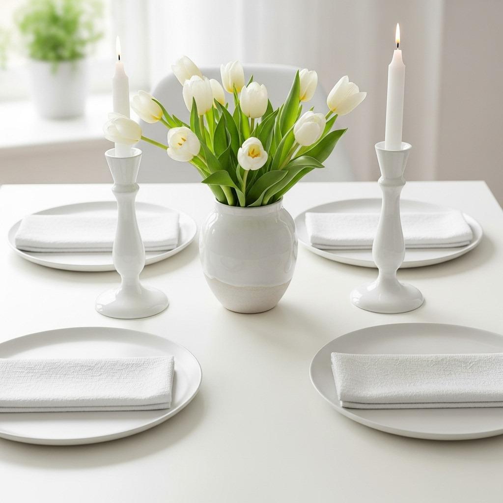 Sometimes less truly is more. A monochromatic dining room tablescape can be incredibly striking, especially if you’re someone who appreciates clean lines and breathing room on your table. This approach works particularly well in modern minimalist spaces.