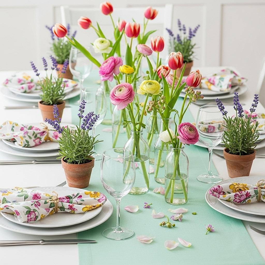 After months of winter, a spring-inspired tablescape feels like taking a deep breath of fresh air. This setup is all about celebrating new growth, soft colors, and the return of flowers. It’s cheerful without being overly sweet, perfect for Easter brunch or a casual Sunday lunch.