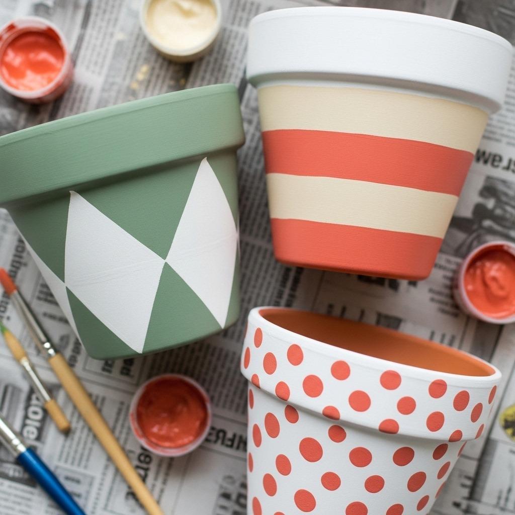 Start by cleaning your pots thoroughly and letting them dry completely. Acrylic craft paint works wonderfully for most designs, though outdoor spray paint provides quicker coverage for solid colors. A coat of primer helps the paint adhere better and prevents the terra cotta from absorbing too much moisture through the design.