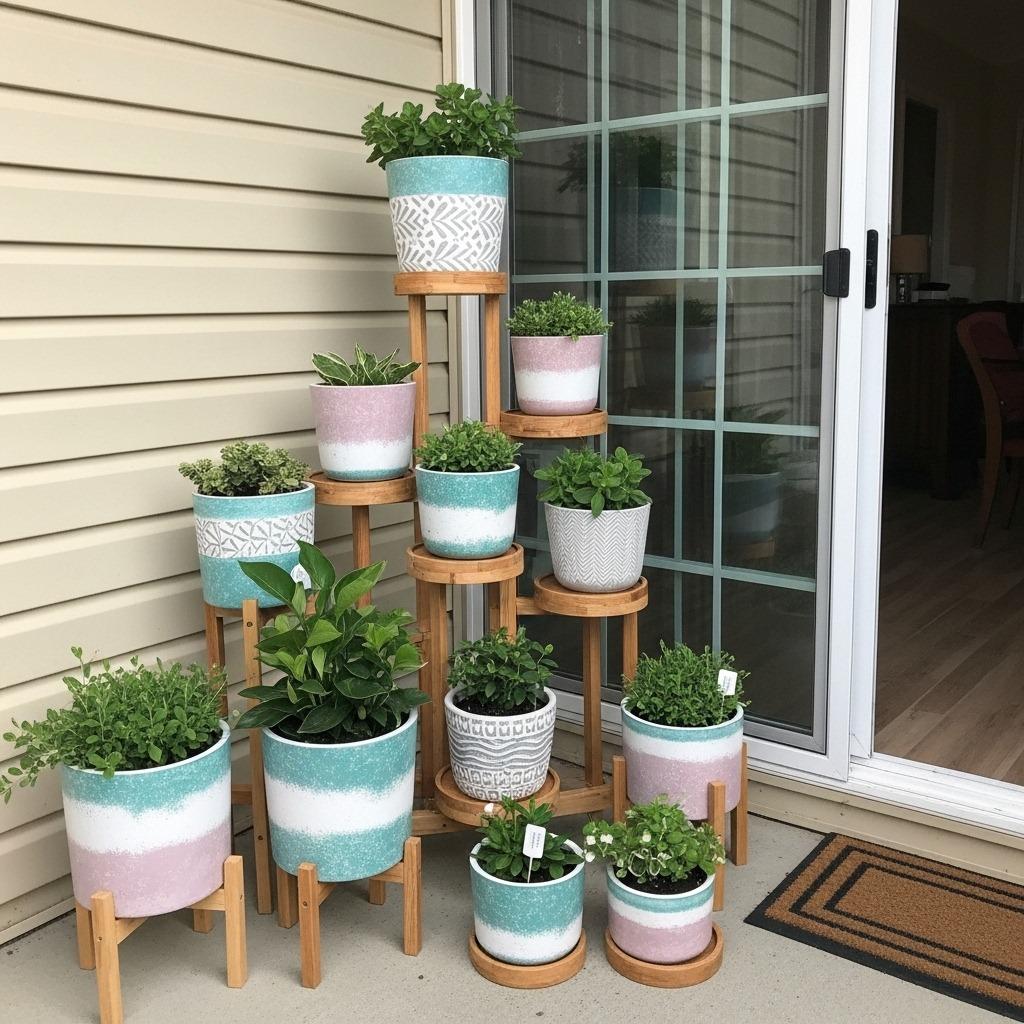 Consider the backdrop when arranging displays. A plain wall lets pots be the stars, while a fence or lattice adds dimension. Seasonal adjustments keep displays feeling fresh – spring bulbs, summer annuals, fall mums, or winter evergreens all change the dynamic while using the same handmade pots.