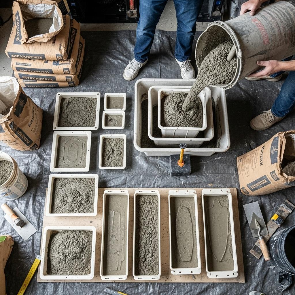 Pour more concrete around the sides between the two containers, stopping about an inch from the top. Tap the mold firmly on your work surface to release air bubbles. Let cure for at least 48 hours before carefully demolding – concrete continues strengthening for weeks, so handle gently at first.