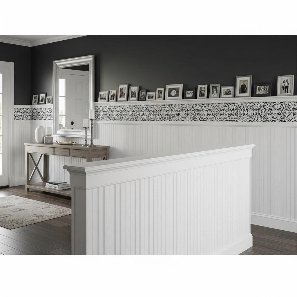 I installed this in my entryway and capped it with a small shelf rail that’s both decorative and functional. The rail gives me a place to rotate seasonal decor while the paneling below protects the wall from daily wear.