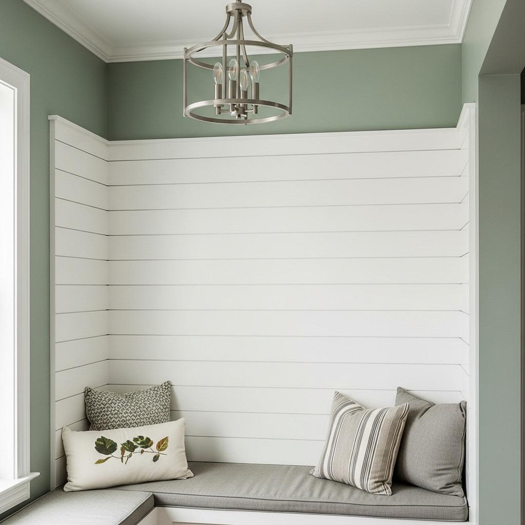I used this approach in my kitchen backsplash area, running shiplap horizontally and capping it with a small crown molding. The combination feels intentional and complete rather than like I just stopped installing boards randomly.