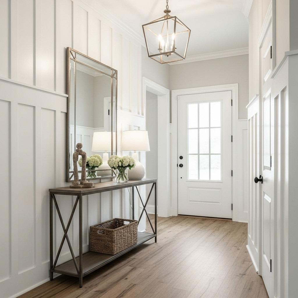 The beauty of half wall paneling is versatility. Go horizontal for a craftsman feel, vertical for farmhouse vibes, or create a geometric pattern for contemporary style. All three approaches work – it’s just about matching your home’s personality.