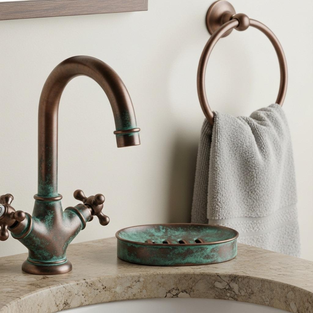 Copper fixtures bring warmth and character that evolves over time. Unlike static finishes, copper develops a living patina that changes with use and exposure. This transformation means your bathroom grows more beautiful rather than showing wear.