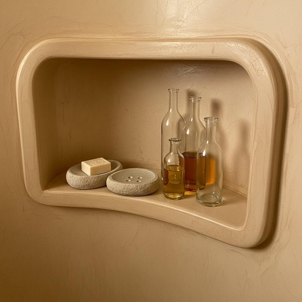 The application creates organic variations in tone that feel hand-crafted. Choose warm earth tones like sand, clay, or pale olive for authentic appeal. Tadelakt works beautifully in wet areas like showers, where its water resistance and seamless appearance shine.