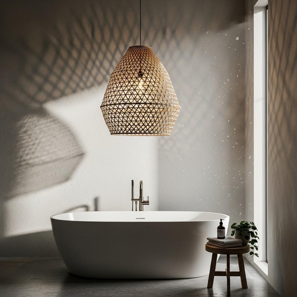 The organic materials filter light softly, creating ambiance that’s perfect for evening baths. Choose oversized pendants for dramatic effect, or cluster smaller ones at varying heights. The natural variations in the weaving ensure no two lights are identical.