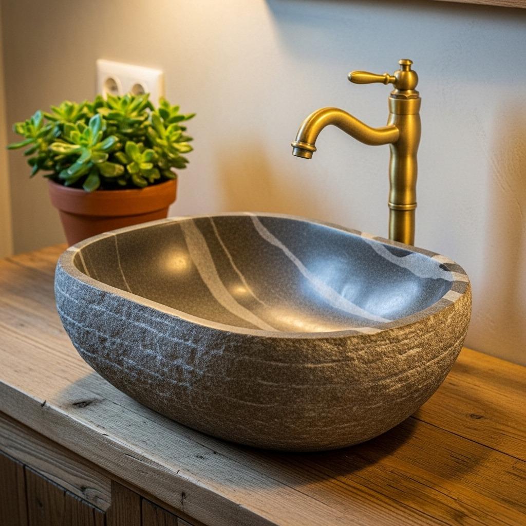 Stone vessel sinks are functional sculptures that anchor your vanity area. Each one is unique, carved from natural materials like marble, granite, or river rock. The weight and permanence of stone brings a grounding quality that lighter materials lack.