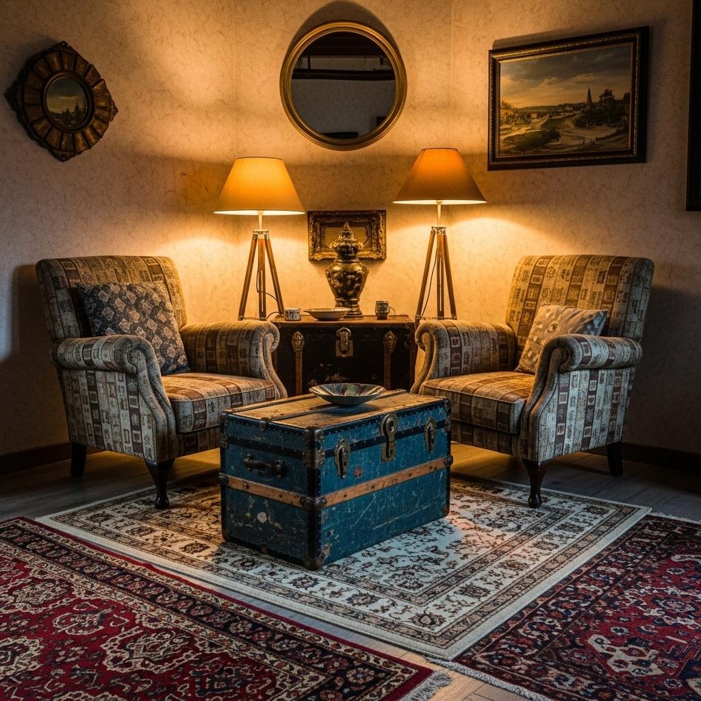 Mismatched seating is your friend here. Two different vintage chairs with similar heights and complementary colors can define a space without looking like a matched set. Add a small table between them for drinks and books.