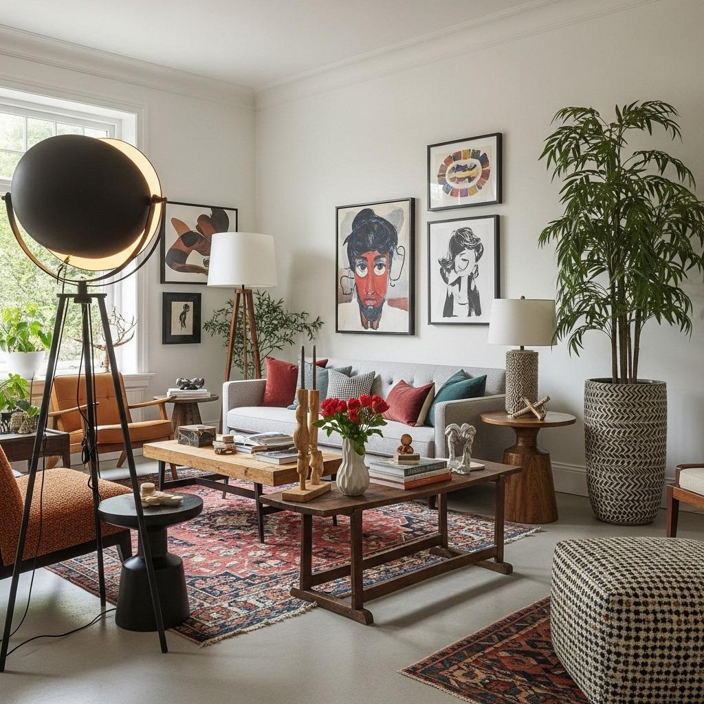 Combining furniture from different periods creates the signature look of an eclectic living room. A mid-century modern credenza can sit beautifully next to a baroque mirror, or a contemporary sectional can anchor a space filled with antique side tables.