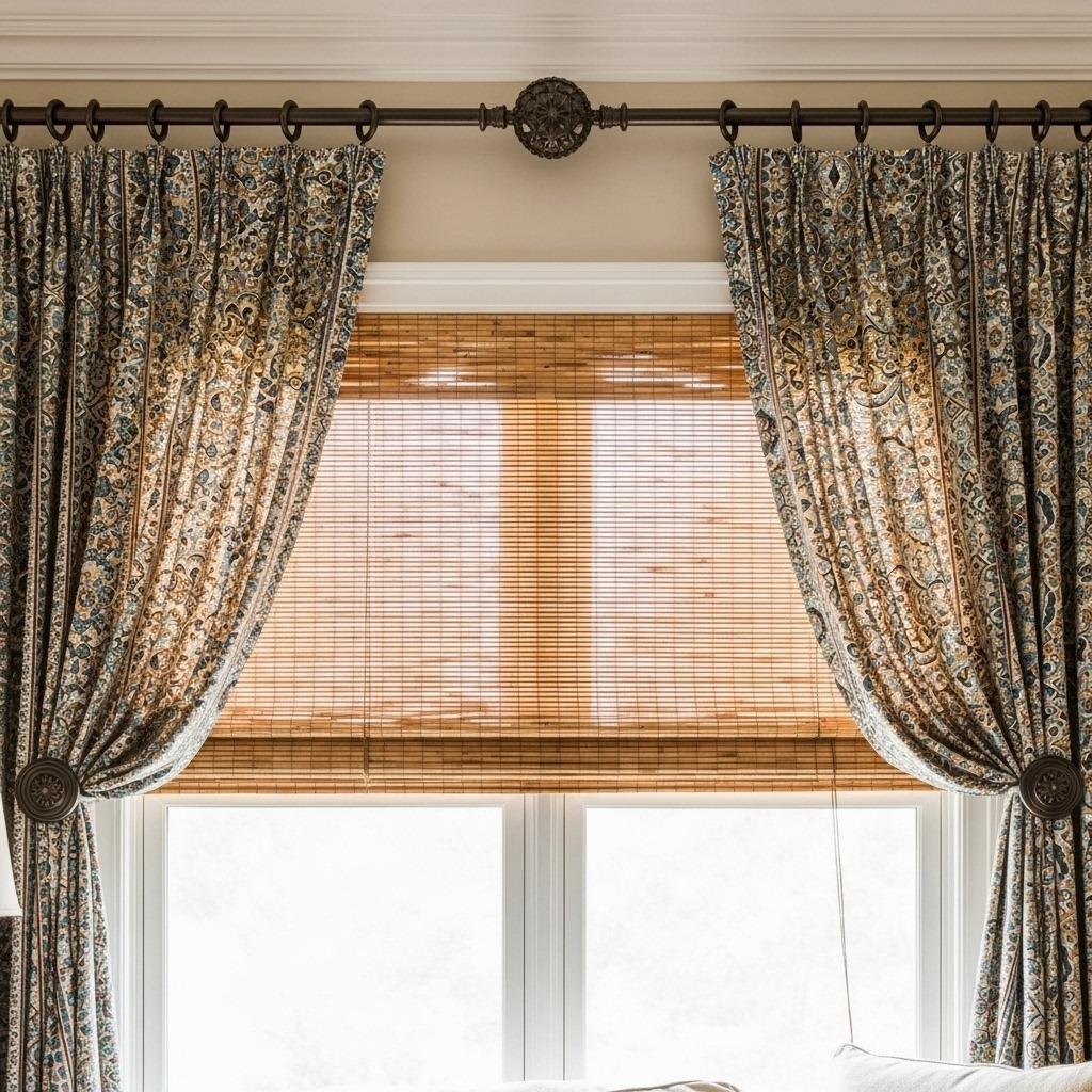 Mix textures in your window treatments just like you do everywhere else. Linen curtains with a nubby weave, sheer voiles, velvet panels, or ethnic-inspired prints each bring something different. The variation keeps your windows from fading into the background.
