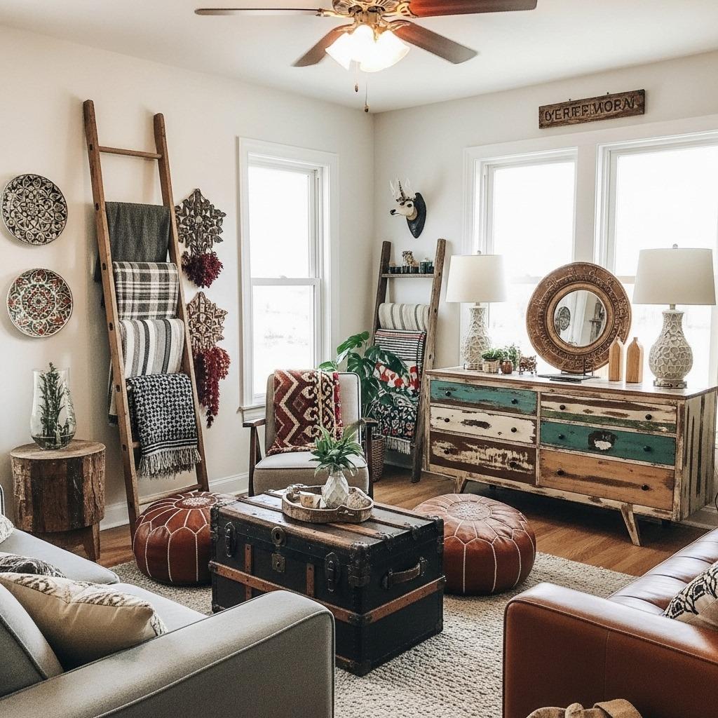 Repurposed and unexpected furniture brings character that standard pieces never could. A vintage trunk becomes a coffee table, a wooden ladder displays throws, or an old dresser holds your TV and media components. These unconventional choices tell stories and spark conversation.