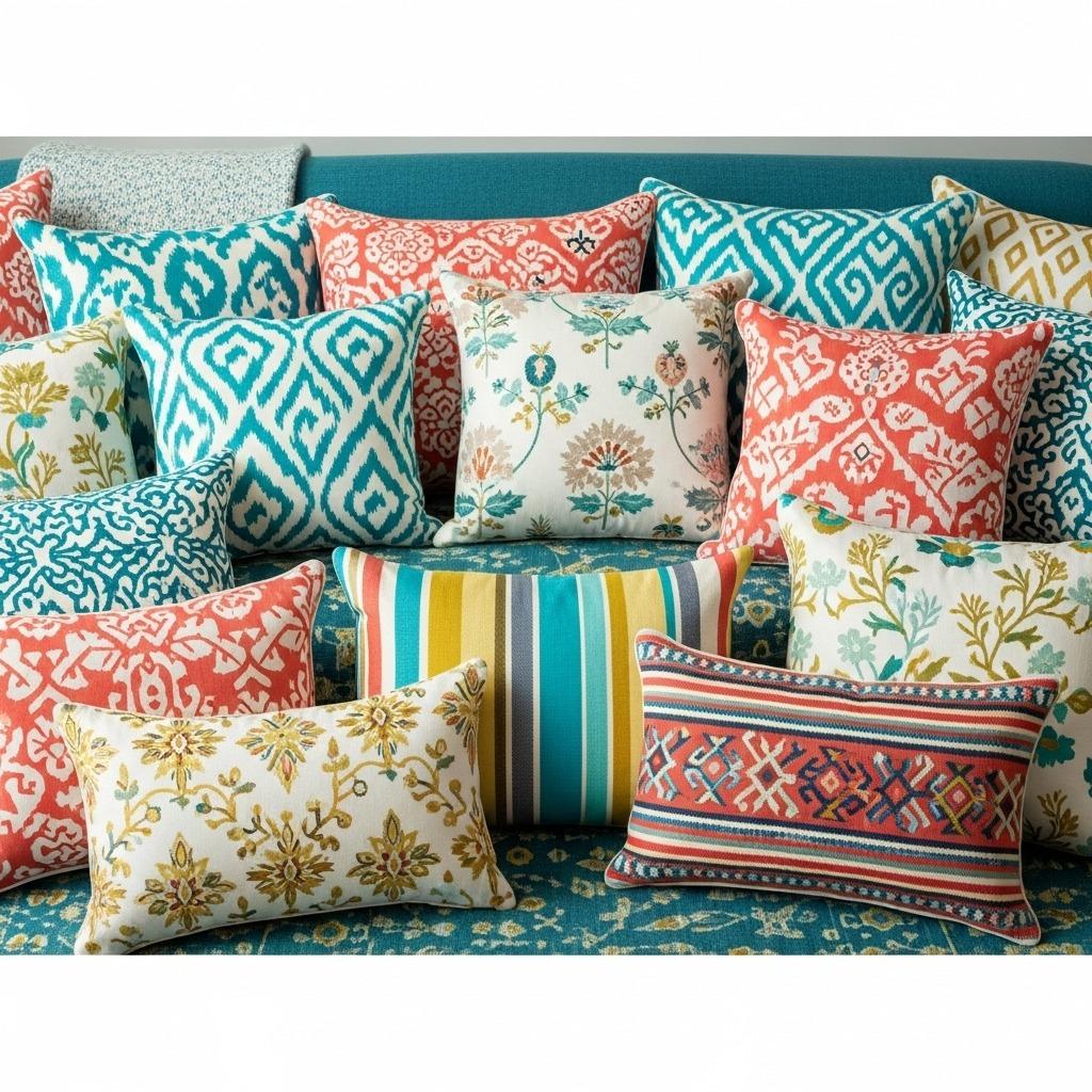 Vary the scale of your patterns too. Pair large-scale prints with medium and small ones to avoid visual competition. A oversized floral pillow looks stunning next to a small geometric print and a medium-scale stripe.