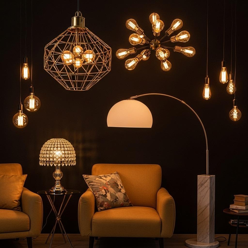 Mix materials and finishes across your lighting choices. Brass, crystal, ceramic, wood, and metal can all coexist when they’re balanced throughout the space. A heavy ornate table lamp on one side of the room can be counterbalanced by a sleek modern floor lamp on the other.