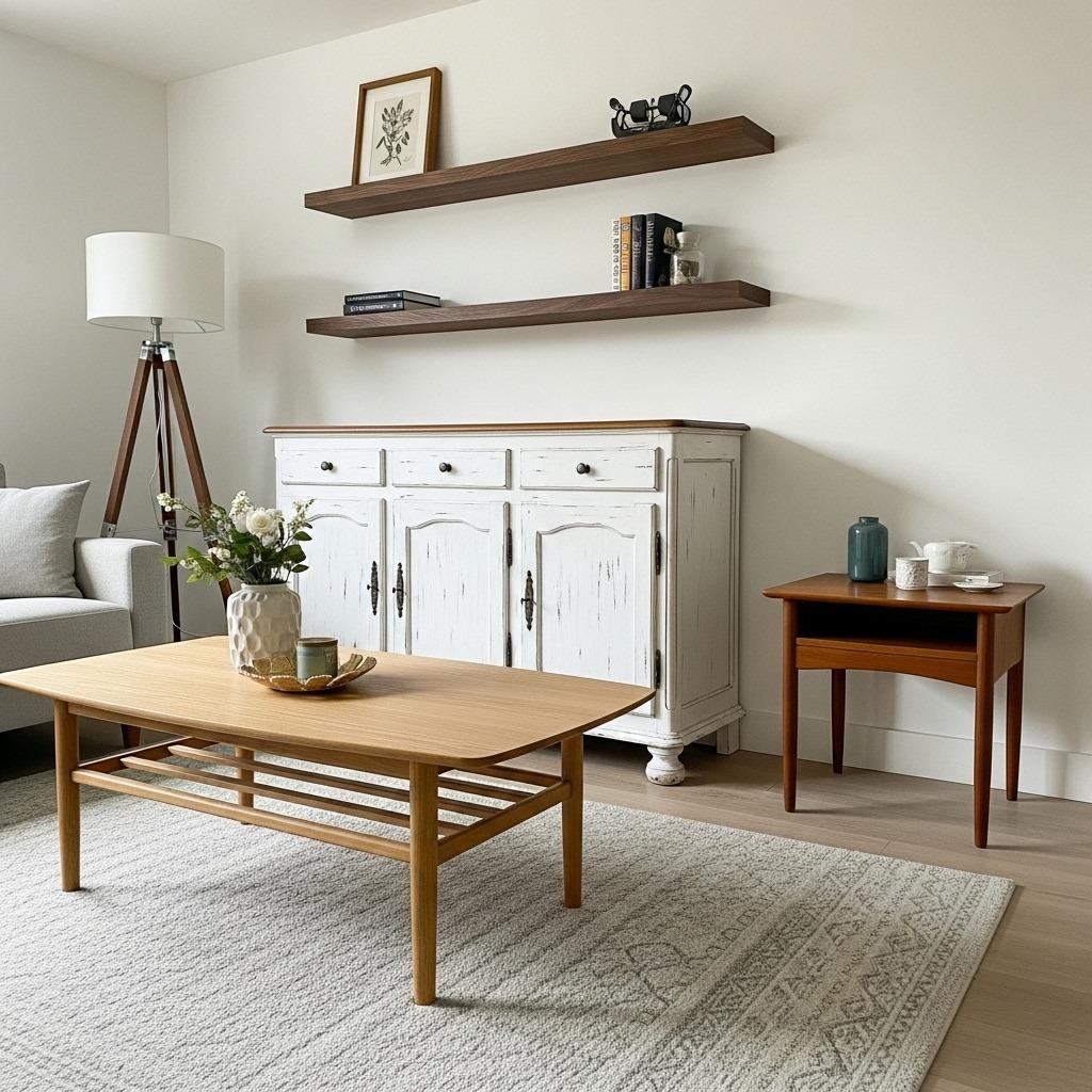 Forget the old rule about matching wood finishes. An eclectic living room thrives on the contrast between natural, stained, and painted wood pieces. The variation creates depth and prevents that too-coordinated showroom look.