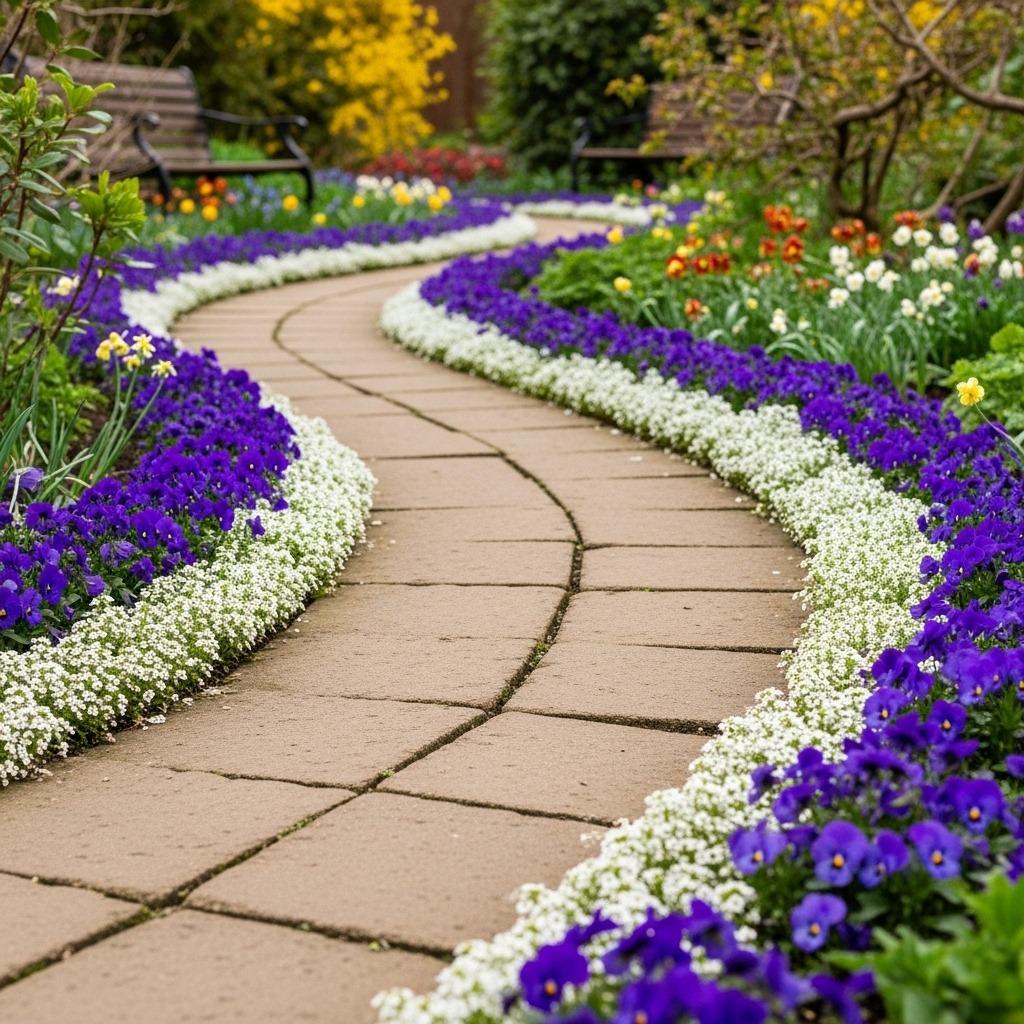 Low-growing varieties work best here. Violas, Johnny-jump-ups, and creeping thyme with edible flowers won’t obstruct pathways as they mature. Their compact habit means you won’t be constantly trimming them back to maintain access. The repetition of the same plant along a border also creates visual cohesion that makes your entire outdoor space feel more intentional.