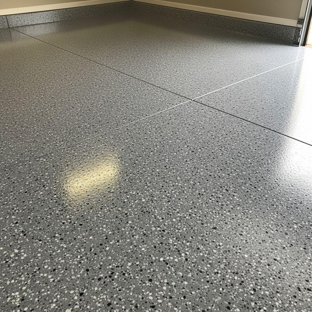The coating process involves etching the concrete, filling cracks, and applying multiple coats of epoxy resin. You can add decorative color flakes between coats for a speckled look, or keep it solid gray. Once cured, epoxy creates an almost impervious surface that’s easy to clean and maintain.