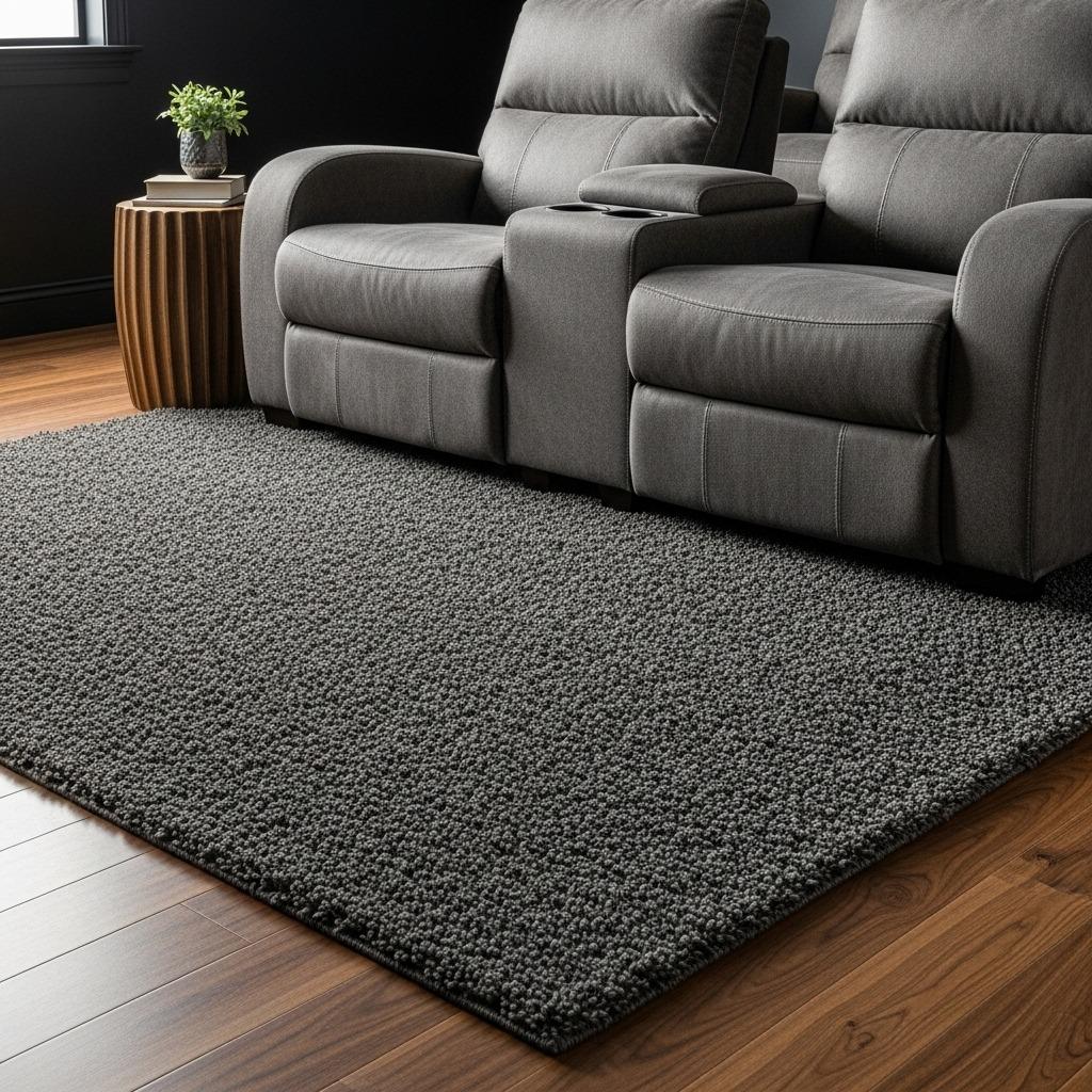 If your theater shares space with other living room functions, area rugs help define the viewing zone visually and acoustically. A thick, plush rug under your seating area absorbs sound and adds comfort underfoot.