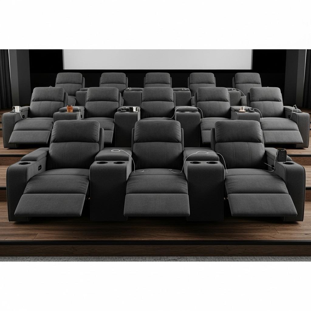 Sectional sofas with deep seats work beautifully if you prefer a more relaxed, living room feel. Add oversized floor cushions or poufs for kids and extra guests. If you’re going for dedicated theater recliners, test them first. Look for models with adjustable headrests, lumbar support, and ideally, power recline.