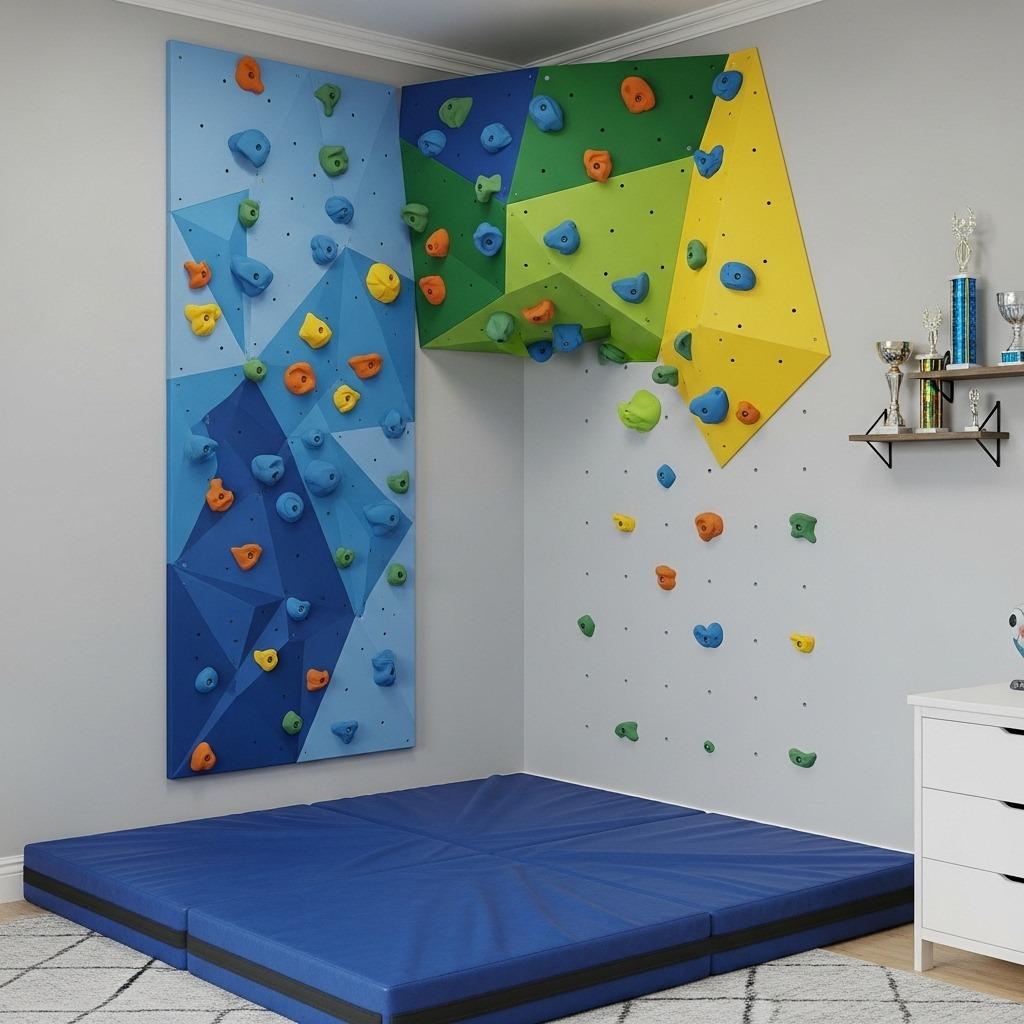 Transform an empty wall into an indoor climbing experience that burns energy and builds confidence. Mount colorful climbing holds at varying heights, creating pathways your child can master as they grow. Add a thick crash mat below for safety, and suddenly you have a functional kids room feature that doubles as decor.