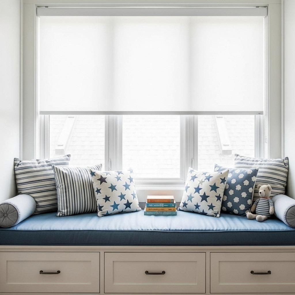 Don’t have a built-in option? Create a similar effect with a low bookshelf positioned under the window and a thick cushion on top. Add safety latches to windows to prevent accidents, and dress the window with cordless blinds or curtains to avoid strangulation hazards. This concept aligns well with creating cozy small living room vibes but scaled for a child’s space.