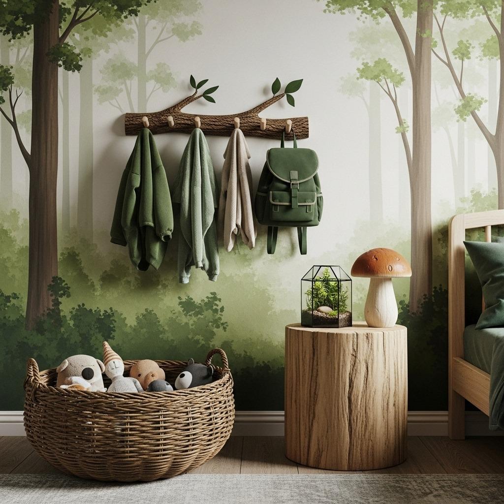 This theme pairs beautifully with neutral bases. Cream walls, natural fiber rugs, and wooden furniture let the nature elements shine without visual competition. Add whimsy through details like a rope swing reading seat or birds nest basket for stuffed animals. For more nature-inspired design ideas, explore our indoor garden living room concepts adapted for kids’ spaces.