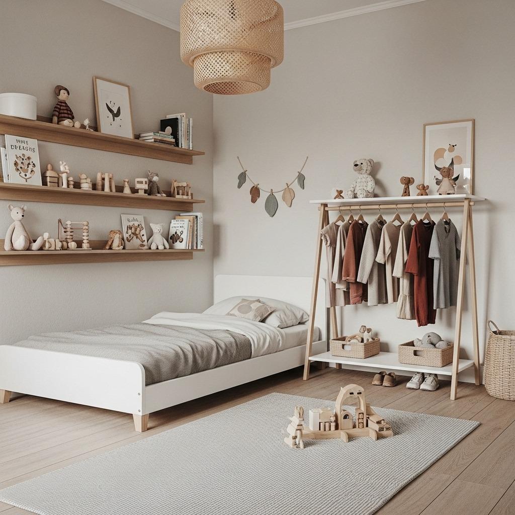 Arrange the room with clear zones: sleeping, playing, reading, and dressing. The defined areas help children understand the purpose of each space and naturally guide behavior. A play zone shouldn’t contain sleeping elements, and the reading nook shouldn’t house active toys.