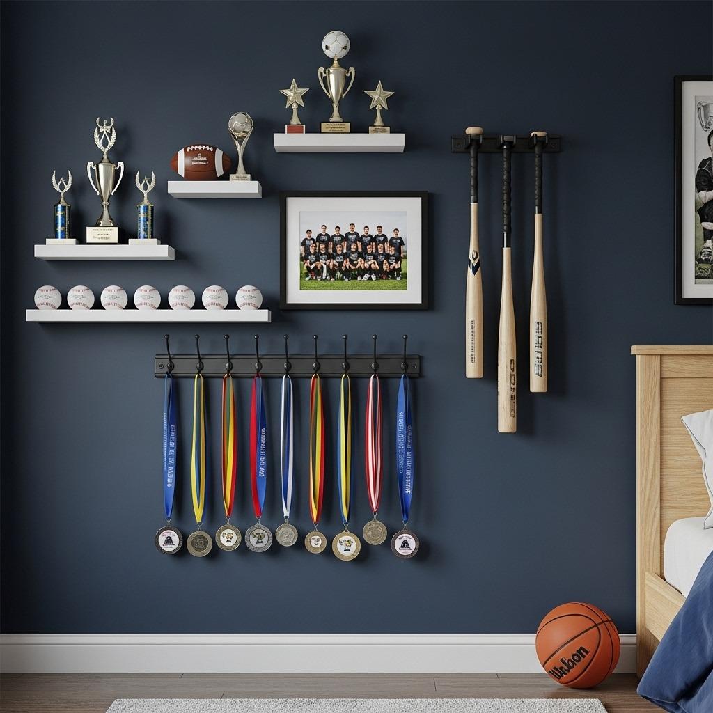 Balance the sports focus with other room elements so the space doesn’t feel one-dimensional. Your child’s interests may shift, and the room should accommodate those changes. Use removable mounting solutions that allow easy reconfiguration when basketball becomes music or soccer transforms into theater.