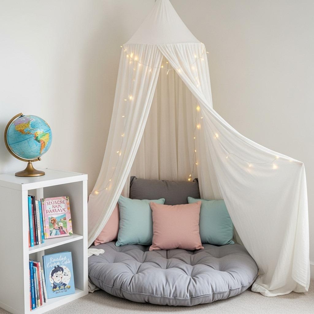 Lighting makes or breaks this space. Battery-operated fairy lights or a clip-on book light ensure adequate illumination without harsh overhead fixtures. Position the nook near a window for natural daytime reading, but make sure curtains can darken the space during bright afternoons.