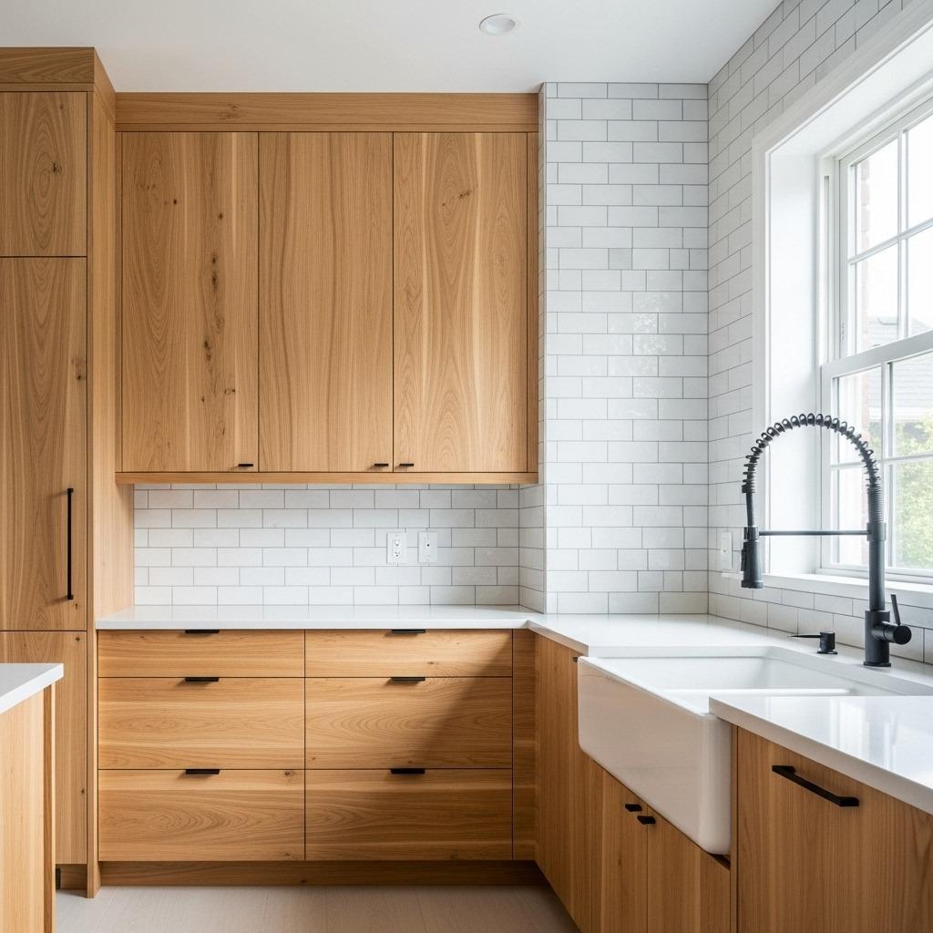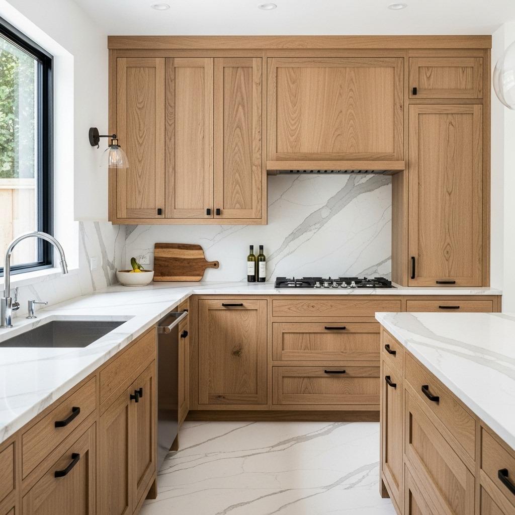 After years of painted cabinets dominating the scene, natural wood is making a strong comeback. There’s something timeless about the warmth and texture that real wood brings to a kitchen.